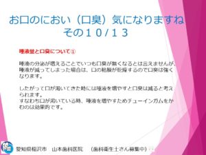 お口のにおい(口臭)が気になる方へ 10/13 2025.07.31 院長ブログ 愛知県稲沢市 山本歯科医院の山本です。 歯科情報のブログとして マスクをよく使うこの時代に自分の「口臭」について どう考えたらいいかお伝えします。 一覧へ戻る