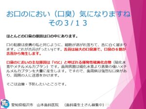 お口のにおい(口臭)が気になる方へ 3/13 2025.07.24 院長ブログ 愛知県稲沢市 山本歯科医院の山本です。 歯科情報のブログとして マスクをよく使うこの時代に自分の「口臭」について どう考えたらいいかお伝えします。 一覧へ戻る