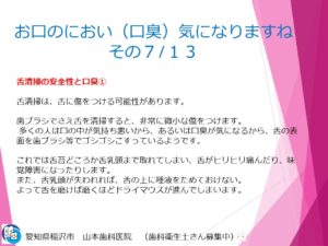 お口のにおい(口臭)が気になる方へ 7/13 2025.07.28 院長ブログ 愛知県稲沢市 山本歯科医院の山本です。 歯科情報のブログとして マスクをよく使うこの時代に自分の「口臭」について どう考えたらいいかお伝えします。 一覧へ戻る