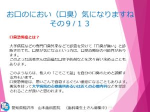 お口のにおい(口臭)が気になる方へ 9/13 2025.07.30 院長ブログ 愛知県稲沢市 山本歯科医院の山本です。 歯科情報のブログとして マスクをよく使うこの時代に自分の「口臭」について どう考えたらいいかお伝えします。 一覧へ戻る