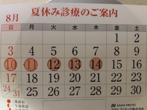 8/10(日)~8/14(木)まで休診